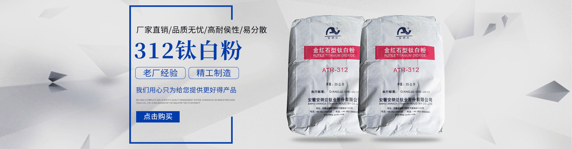 常州安鈦化工有限公司經(jīng)銷批發(fā)的鈦白粉、沉淀硫酸鋇、立德粉、滑石粉、高嶺土、炭黑、云母粉、彩色顏料、氫氧化鈣、硅微粉、氧化鐵紅、氧化鐵黑、金紅石型鈦白粉、銳鈦型鈦白粉、進口鈦白粉暢銷消費者市場,在消費者當中享有較高的地位,公司與多家零售商和代理商建立了長期穩(wěn)定的合作關系。常州安鈦化工有限公司經(jīng)銷的鈦白粉、沉淀硫酸鋇、立德粉、滑石粉、高嶺土、炭黑、云母粉、彩色顏料、氫氧化鈣、硅微粉、氧化鐵紅、氧化鐵黑、金紅石型鈦白粉、銳鈦型鈦白粉、進口鈦白粉品種齊全、價格合理。常州安鈦化工有限公司實力雄厚,重信用、守合同、保證產(chǎn)品質量,以多品種經(jīng)營特色和薄利多銷的原則,贏得了廣大客戶的信任。